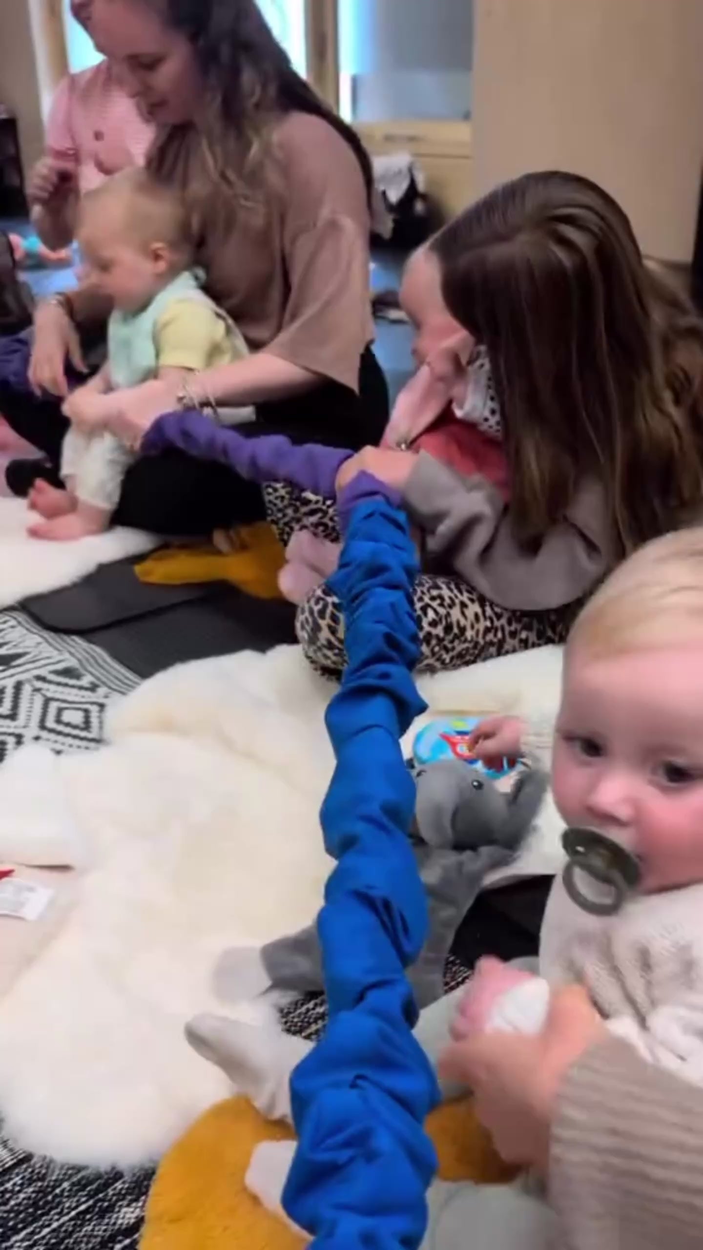 Yesterday was the first time using the stretchy band and it was a big hit! It was perfect for the 12 parents and babies in the class and for something relatively simple it offers so much potential! I loved watching the babies concentration as they held on and moved the band, so much development going on! It will be a regular feature of Disco Babies Copenhagen!
